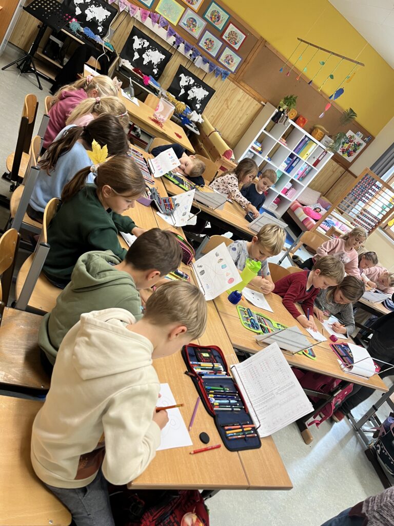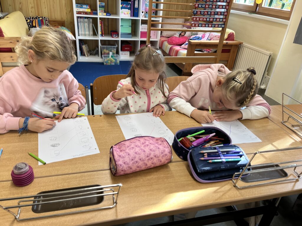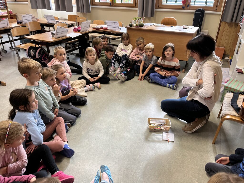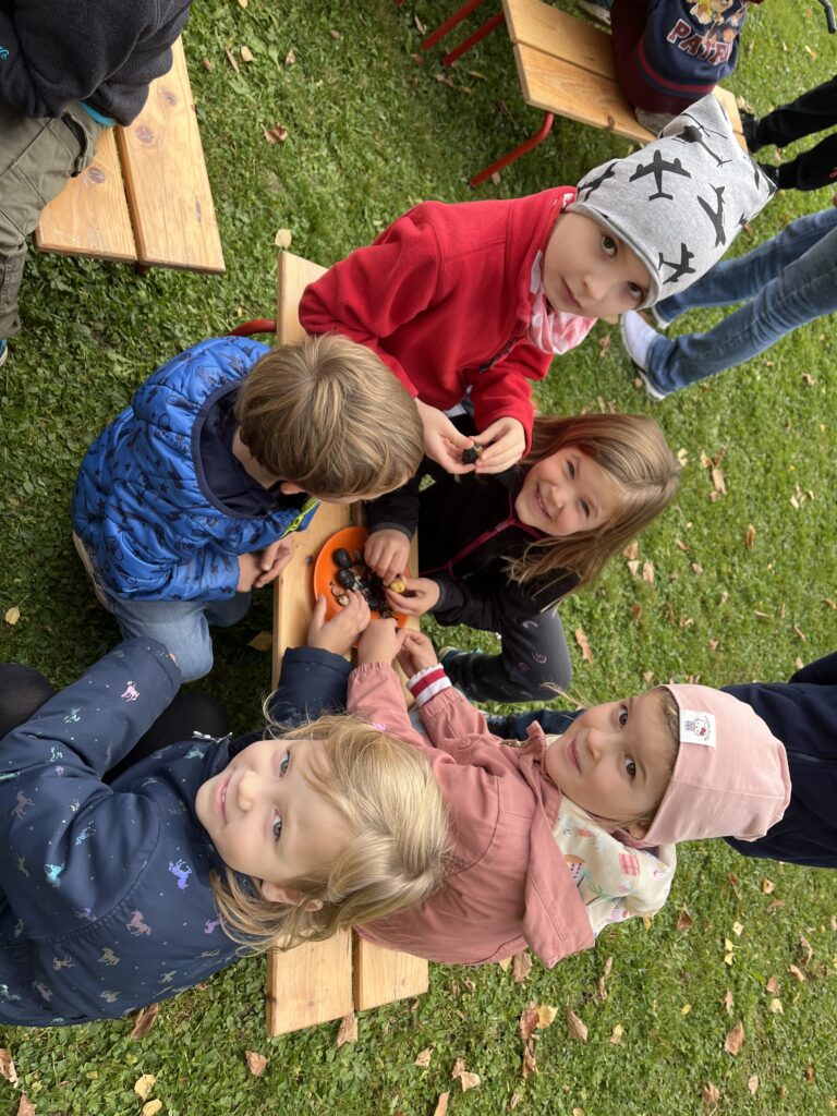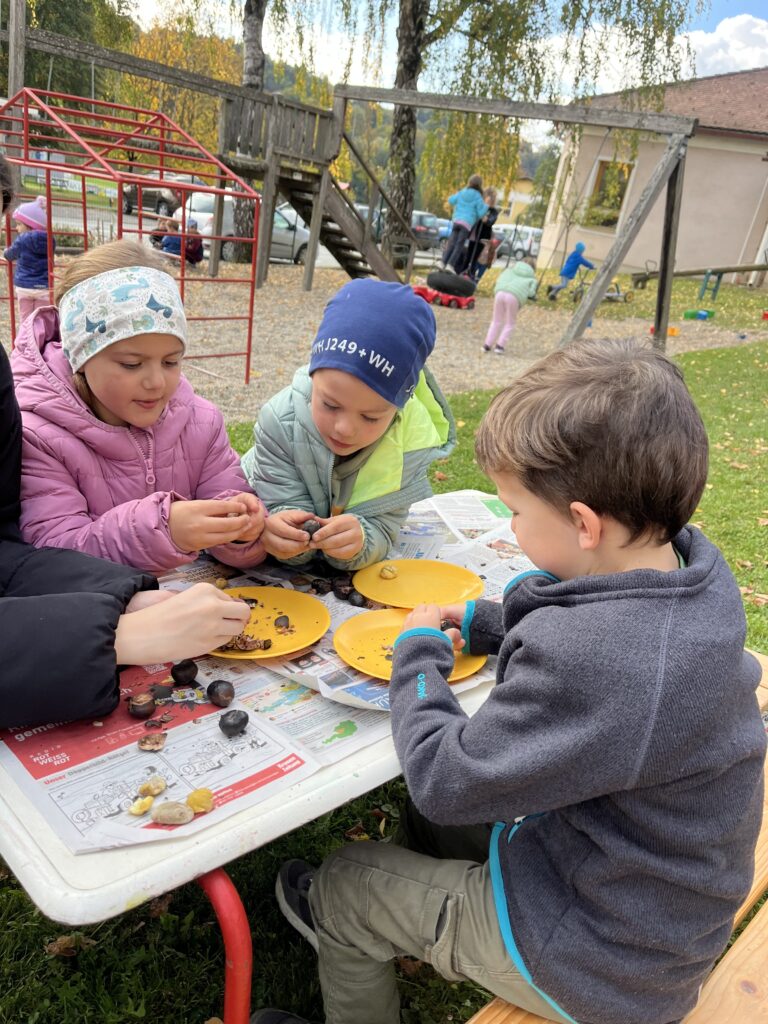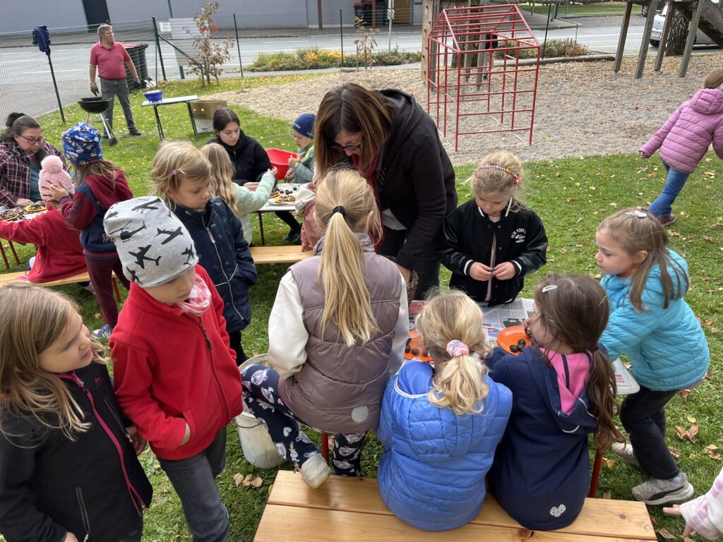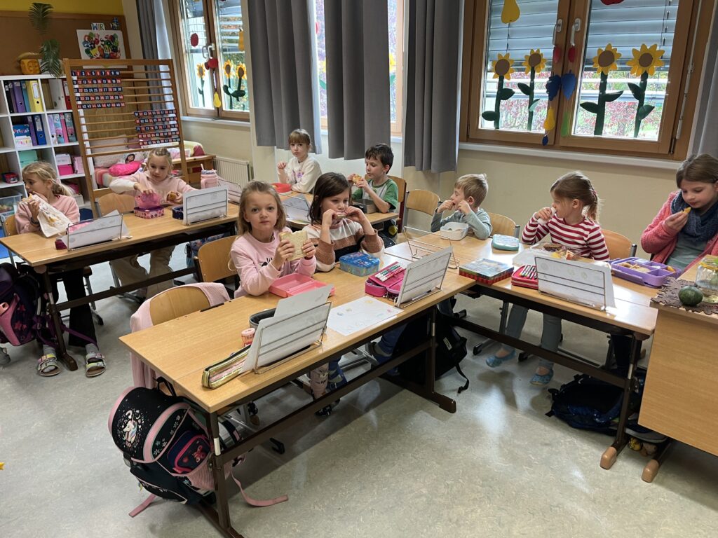 Unsere zukünftigen Erstklässler:innen waren zu Besuch. Es wurde beim gemeinsamen Reimen und Basteln erste Schulluft geschnuppert. Die Kinder konnten Eindrücke vom Schulalltag sammeln und lernten ihre zukünftige Lernumgebung spielerisch kennen. Zum Abschluss luden uns die Kindergartenkinder zum Kastanienbraten in den Kindergarten ein. Transition wird bei uns gelebt, der Übergang vom Kindergarten in die Schule wird mit Freude begleitet.