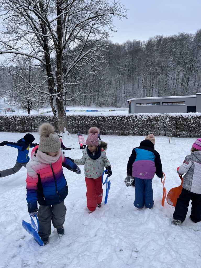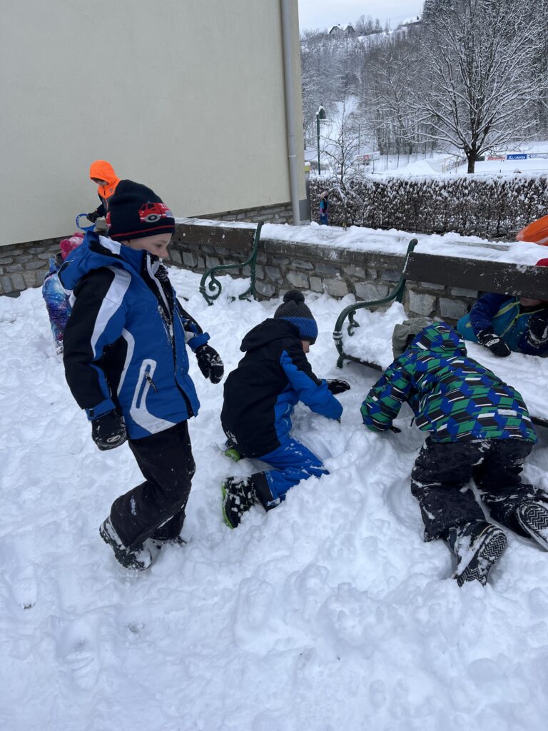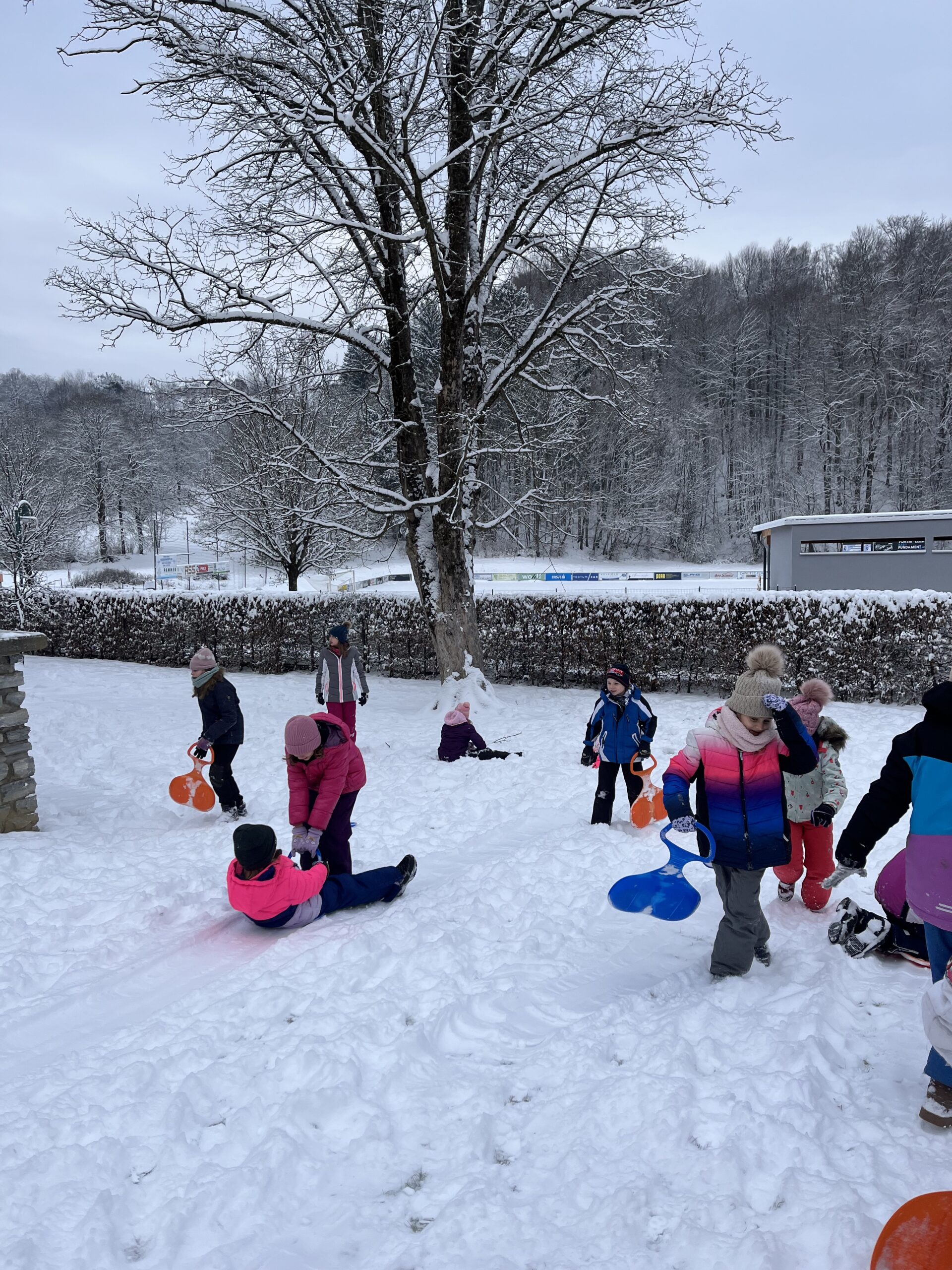 Endlich hatten wir in dieser Woche den lang ersehnten Schnee – und unsere Kinder haben jede Pause in vollen Zügen genutzt, auch die Turnstunden wurden ins Freie verlegt. Begeistert spielten sie im Schnee, bauten kleine Schneehügel und rutschten mit ihren Schneerutschern hinunter. Eine wunderbare Winterwoche mit vielen glücklichen Gesichtern!