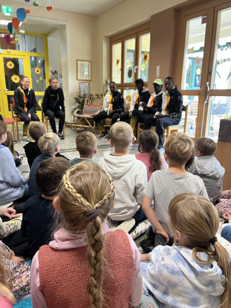 Wir durften einen ganz besonderen sportlichen Vormittag erleben. Der Verein run2gether besuchte uns mit vier Weltklasse-Bergläufern, die sogar Weltmeistertitel im Berglauf tragen. Nach einer kurzen Vorstellung konnten die Kinder in einer Fragerunde alles über das Leben als Profisportler erfahren. Anschließend ging es gemeinsam in eine Bewegungseinheit mit Aufwärmen, Dehnen und spannenden Wettläufen, bei denen die Schüler:innen Seite an Seite mit den Lauf-Profis liefen. Zum Abschluss gab es noch Autogrammkarten für jedes Kind.