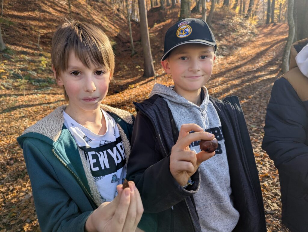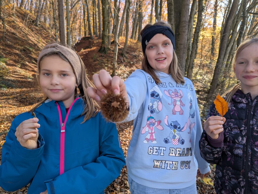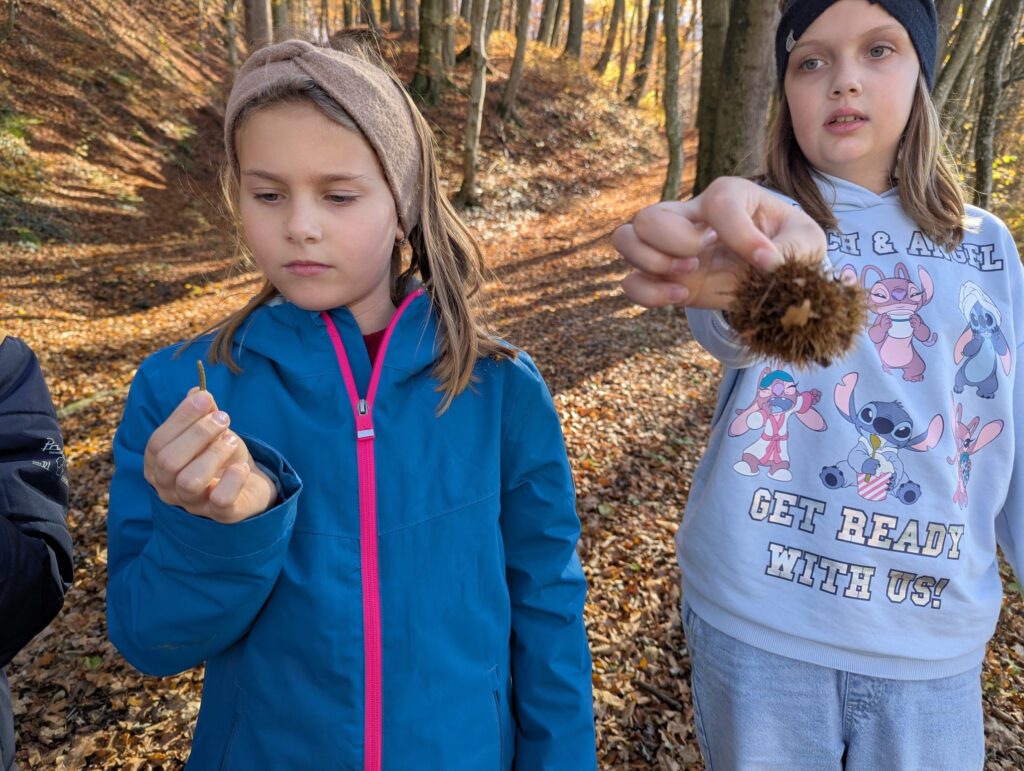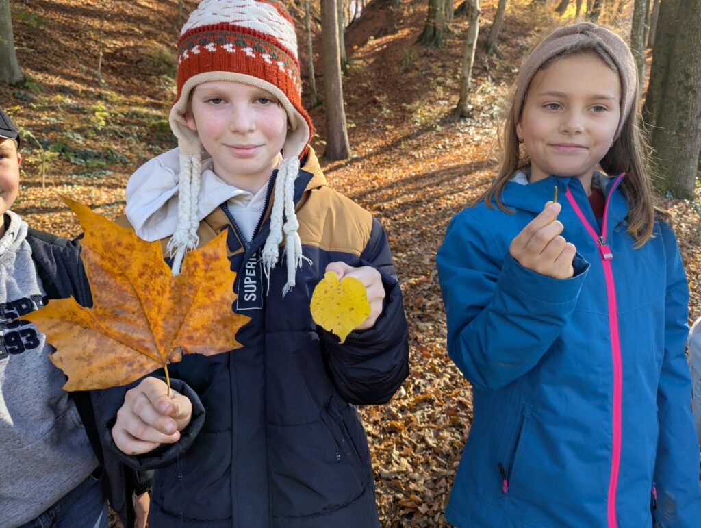 Die Schüler:innen der 3. und 4. Schulstufe verbrachten den Unterricht im herbstlichen Wald. Dabei erforschten sie die Blätter und Früchte der Bäume und entdeckten, wie sich die Natur im Herbst verändert.