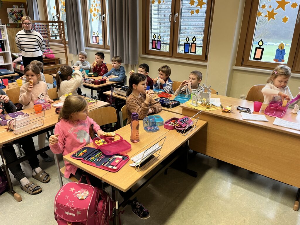 Am letzten Schultag vor den Weihnachtsferien kehrte bei uns eine ganz besondere Stimmung ein. In gemütlicher Atmosphäre sangen wir gemeinsam Weihnachtslieder und öffneten das letzte Häuschen unseres Adventskalenders. Sogar das Christkind hinterließ uns ein Päckchen!...
